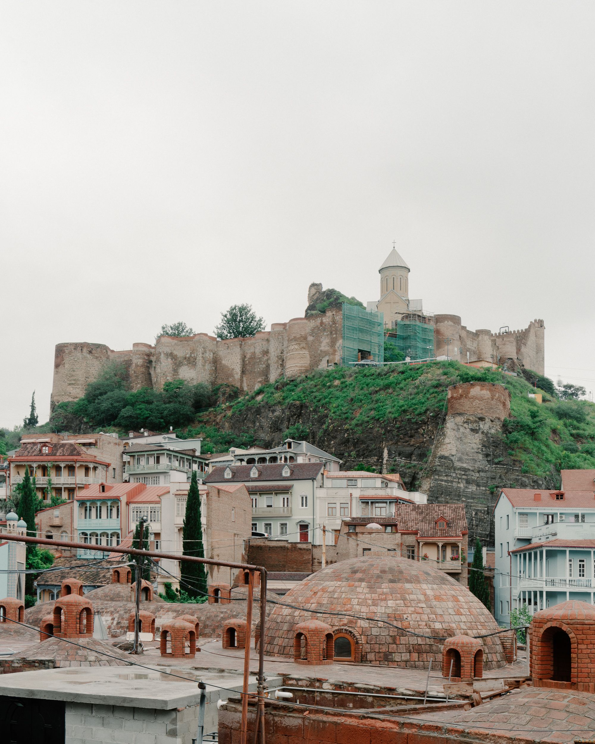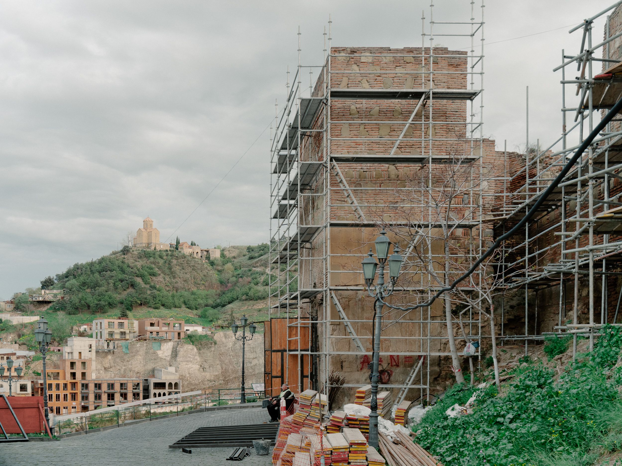 The Citadel housed a royal palace, a caravanserai, and St. Nicholas Church. The fortress still preserves the ruins of the Tebriz and Istanbul Towers. Alongside the Sololaki ridge, the Narikala walls ended with the fortified structure of Shahistakhti. A new St. Nicholas Church, designed by T. Kapariodze, was built in 1996 and 1997 to replace a late 13th-century church. The walls of Narikala underwent restoration in the 1900’s and early 2000’s.
