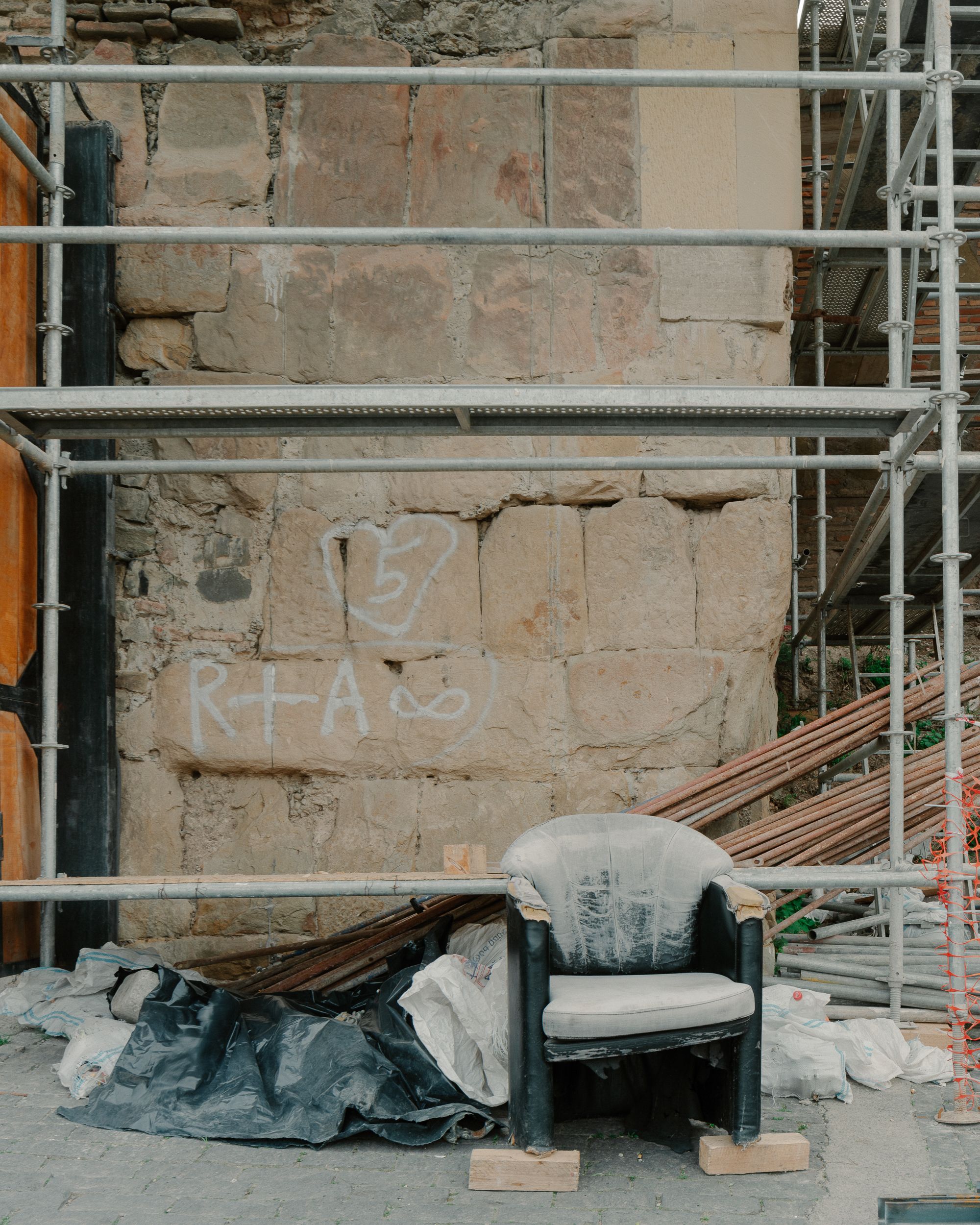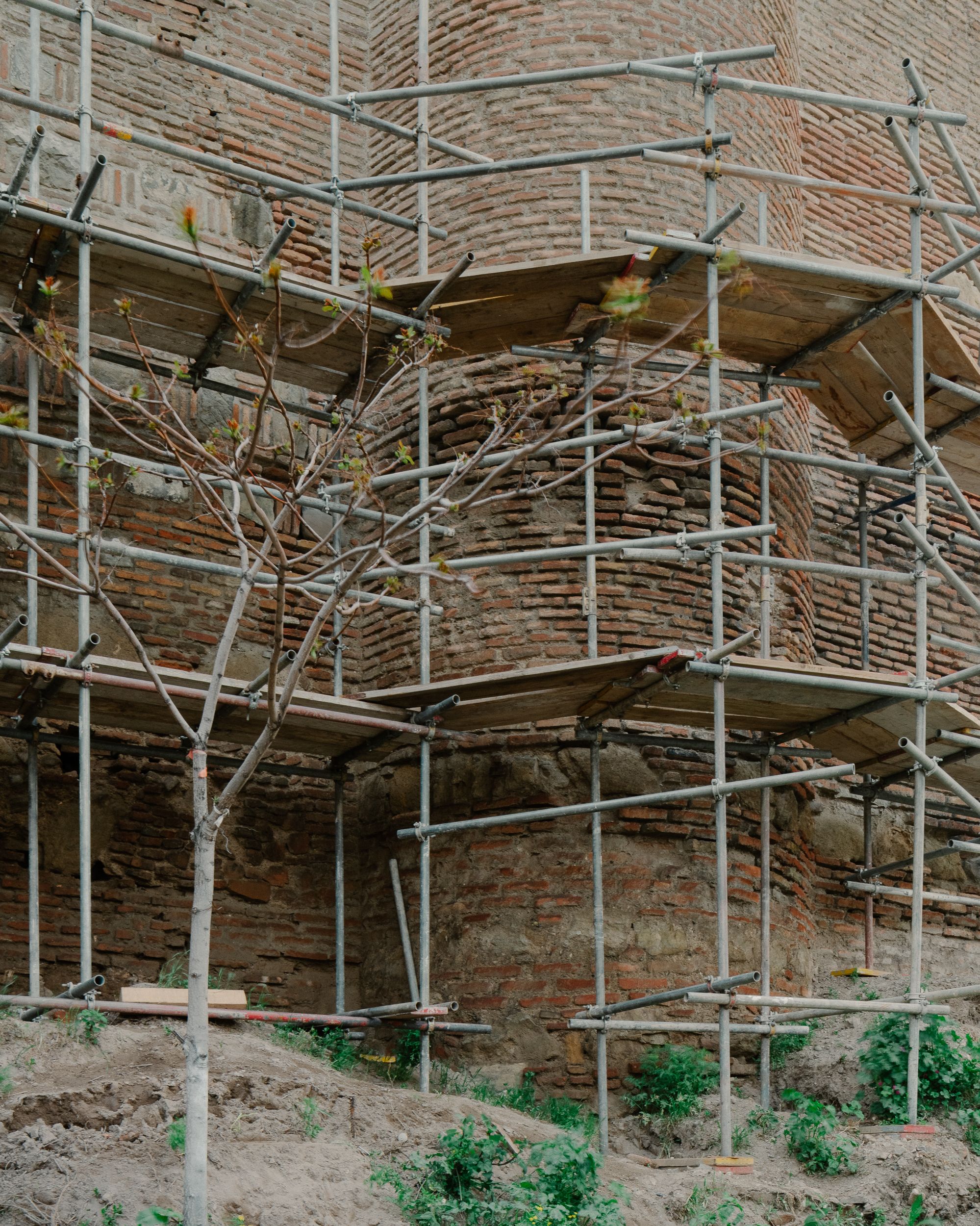 The Kala Citadel was initially built from cut stone, as V. Tsintsadze infers from observing its oldest remaining part—the corner tower, forming the entrance to the fortress on the northeast. "The rectangular shape of the tower, the thickness of its walls, the selection and combination of stone blocks, the quality of the mortar, and the overall impression created by the monument lead to the belief that this surviving structure is part of the Citadel from the early feudal era. The Kala Citadel, as evidenced by the extant fragment of the tower, was probably built from cut stone." notes V. Tsintsadze. Nowadays, most of Narikala's walls are made of rough stone and brick, and signs of extensive repairs and modifications are visible.